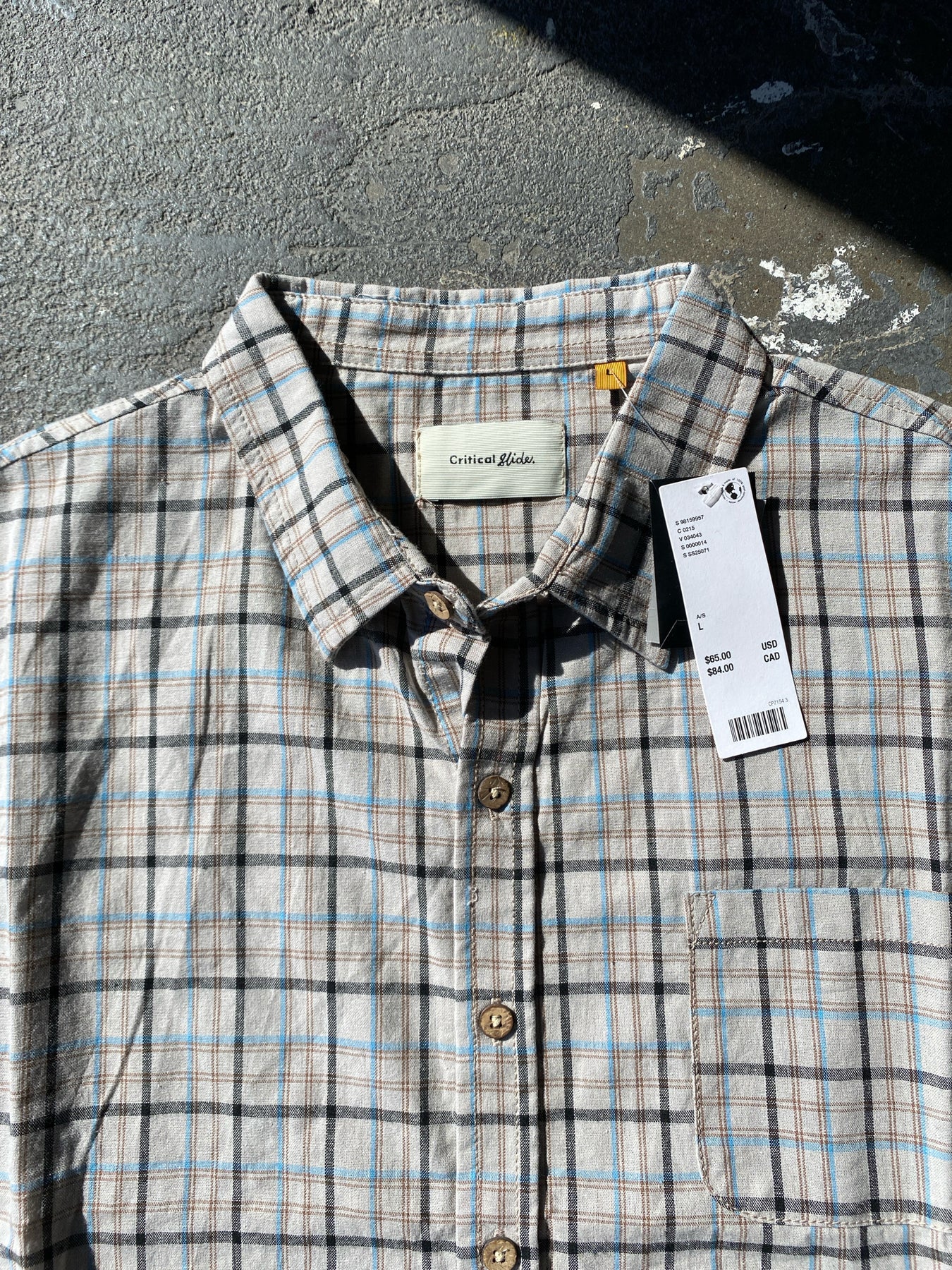 [{"id":49270614917357,"title":"Gray \/ Large","option1":"Gray","option2":"Large","option3":null,"sku":"859651","requires_shipping":true,"taxable":true,"featured_image":null,"available":true,"name":"New Critical Slide Size Large Button Up - Gray \/ Large","public_title":"Gray \/ Large","options":["Gray","Large"],"price":1800,"weight":0,"compare_at_price":6500,"inventory_management":"shopify","barcode":"00859651","requires_selling_plan":false,"selling_plan_allocations":[]}]