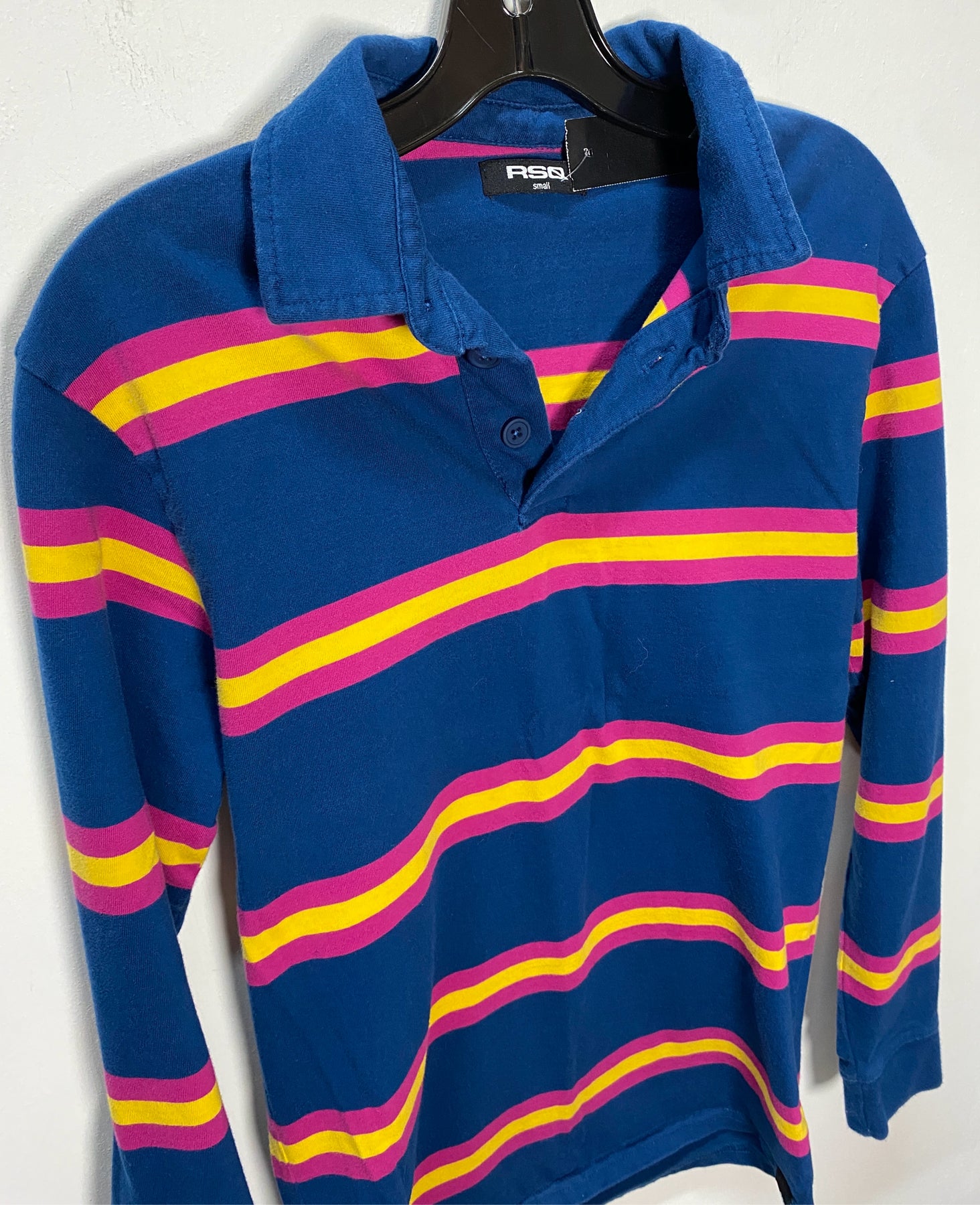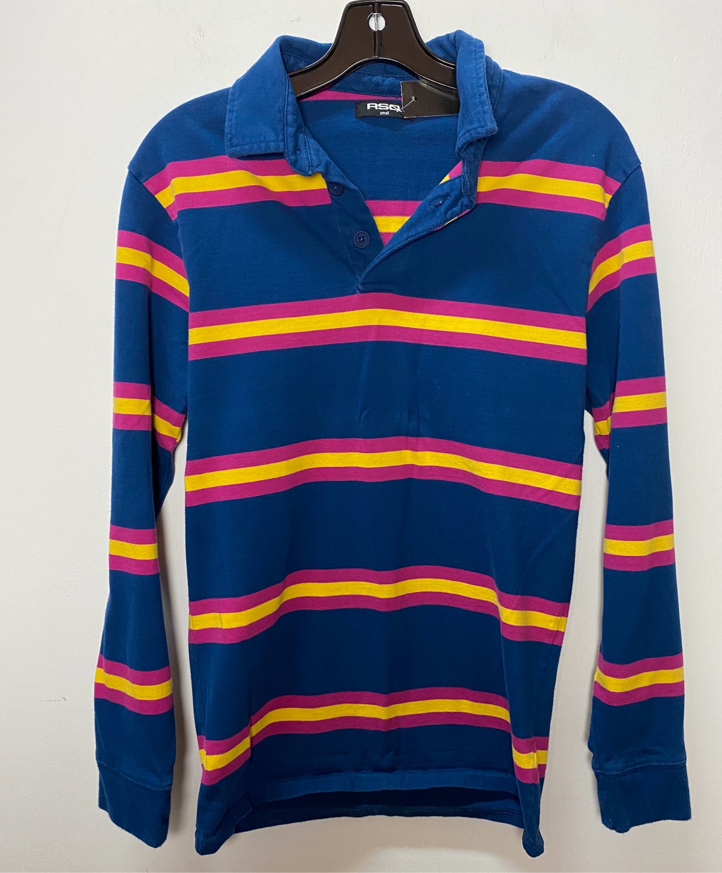 RSQ Small Long Sleeve Polo Navy Shirt