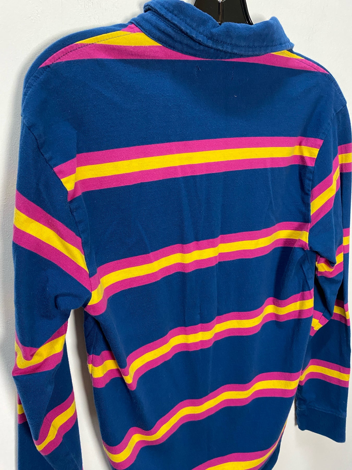 pink yellow stripe 1/4 button up long sleeve