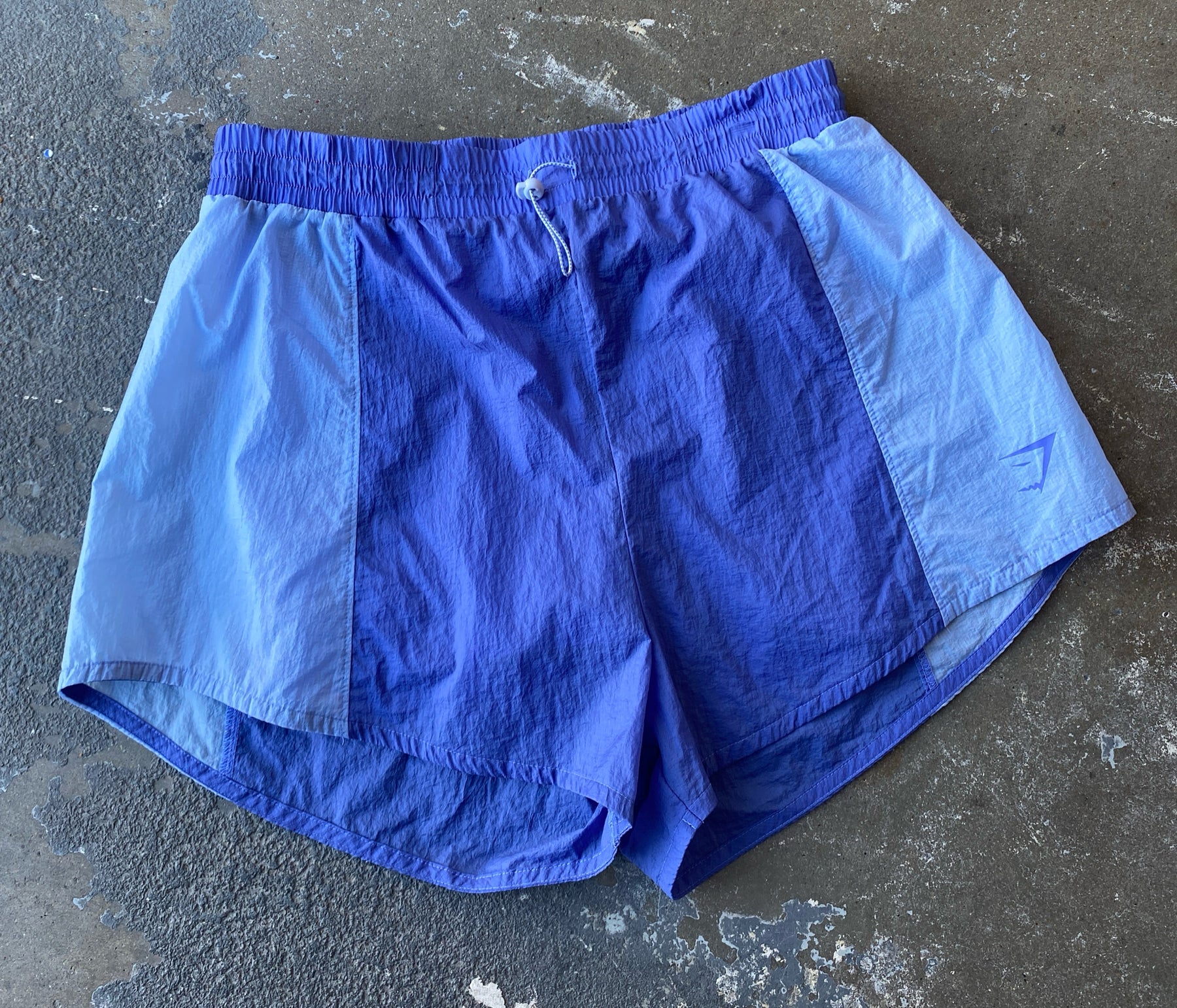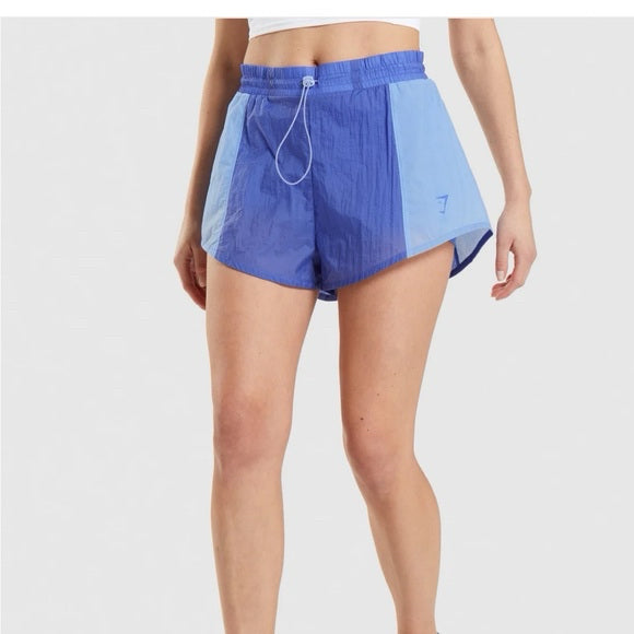 lined color block wind shorts in court blue and moonstone blue