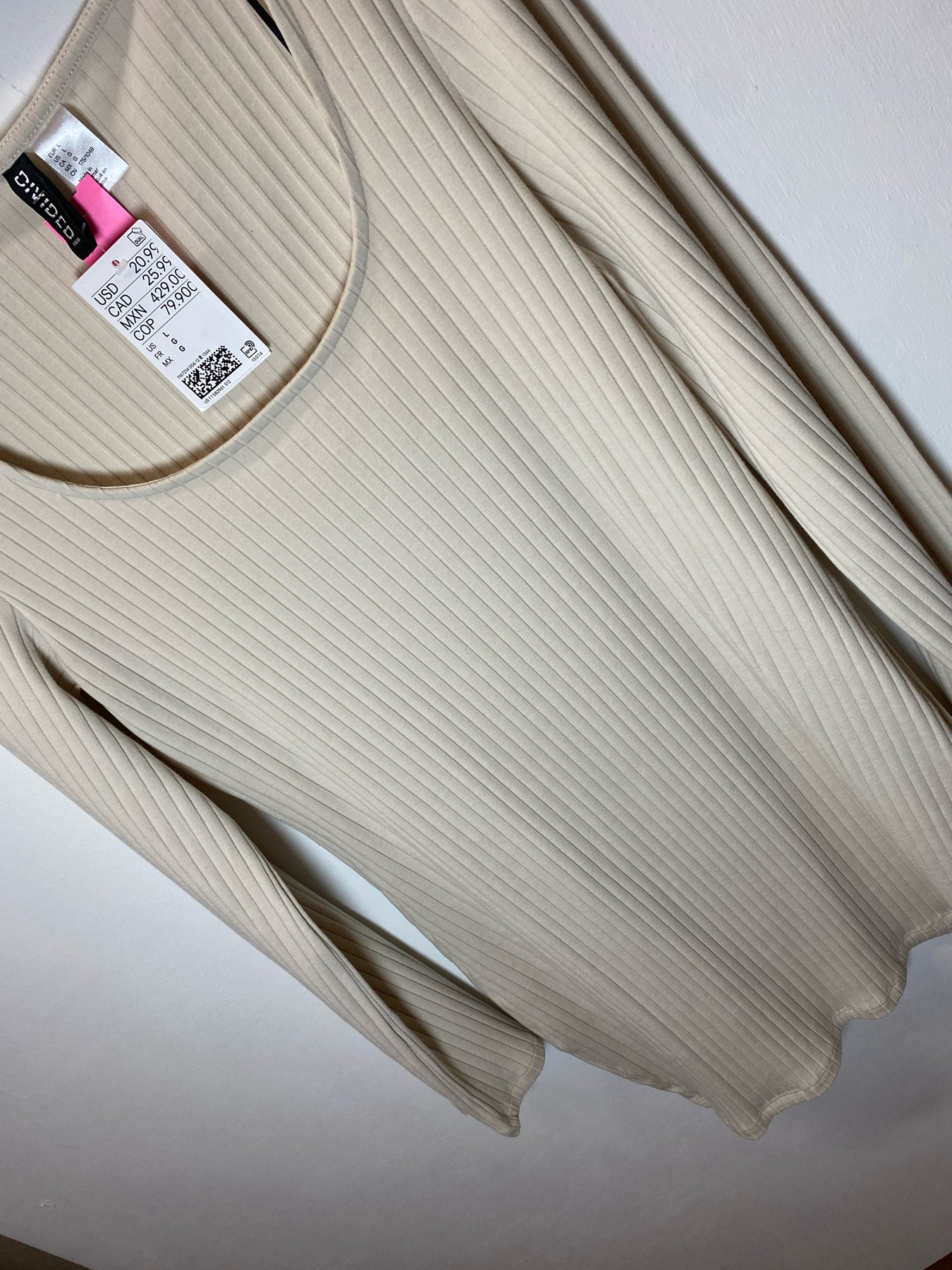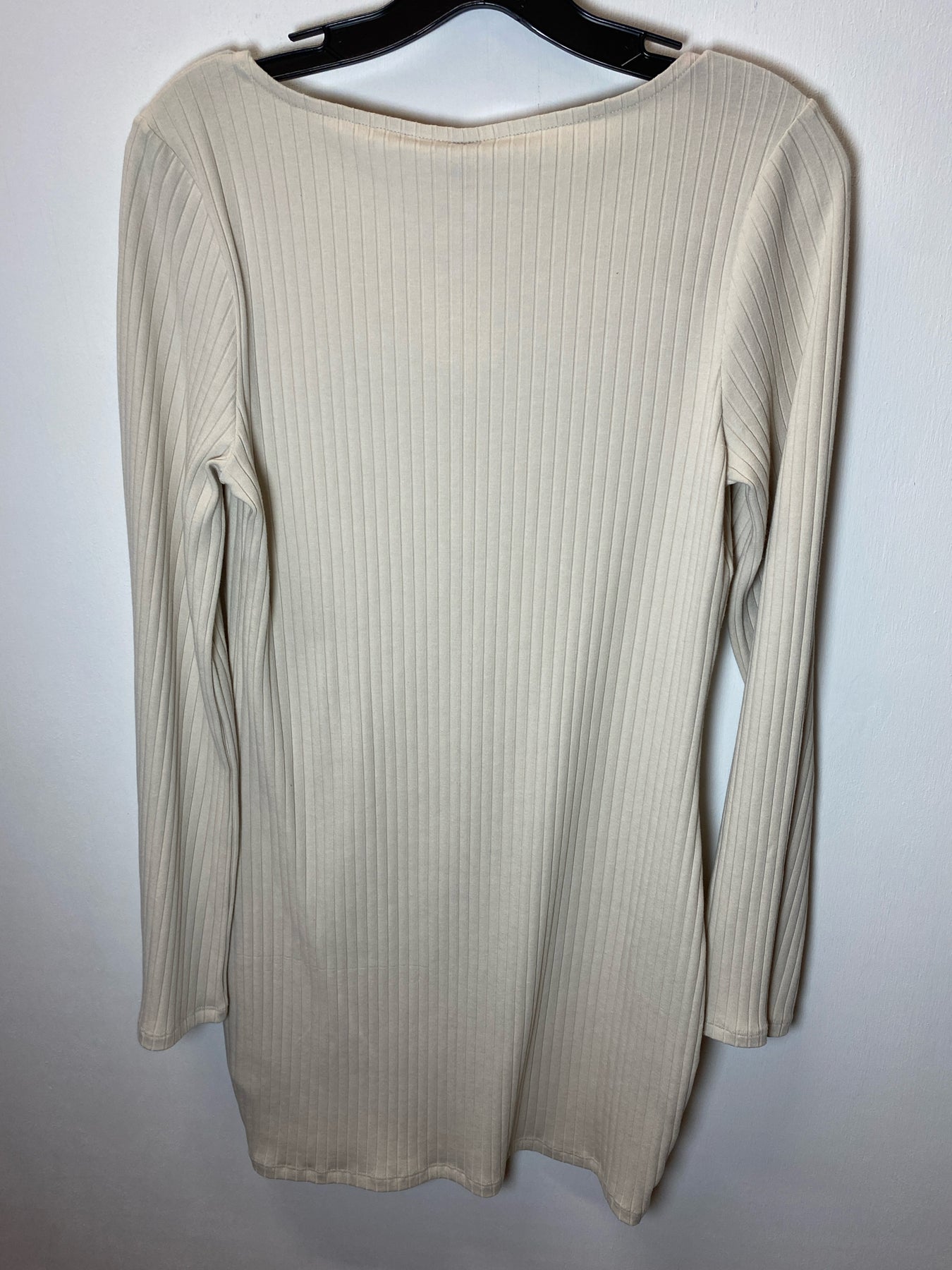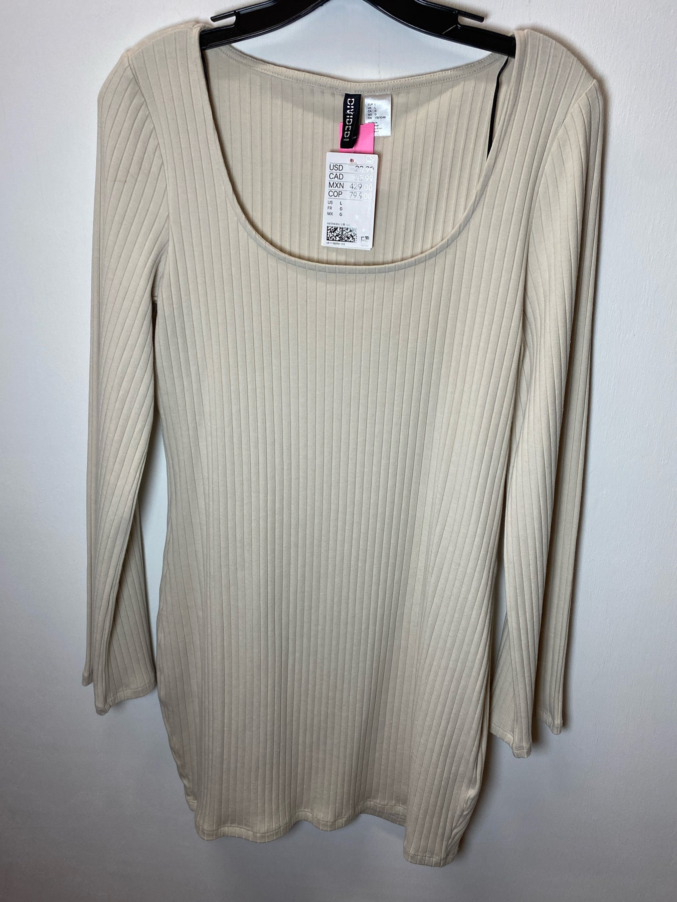 H&M Large Cream Ribbed Knit Long Flare Sleeve Dress