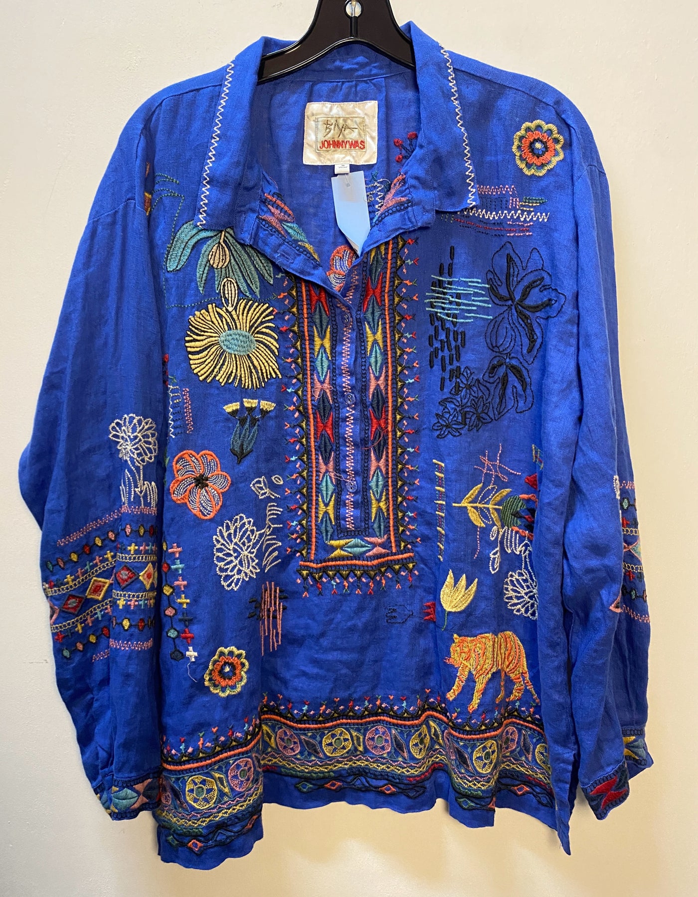 Johnny Was Simmie Blouse Medium Blue Embroidery Blouse