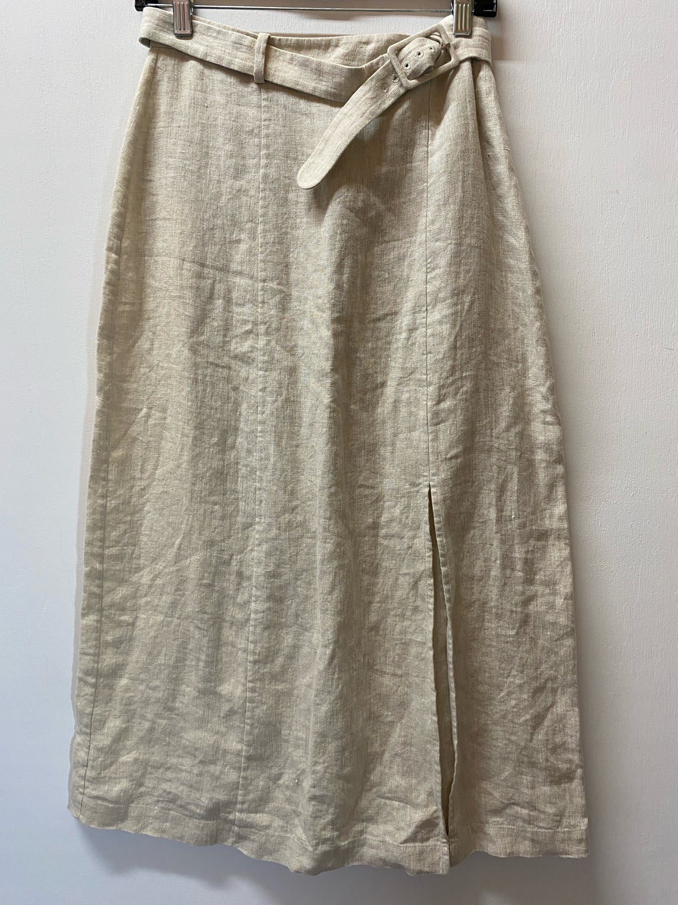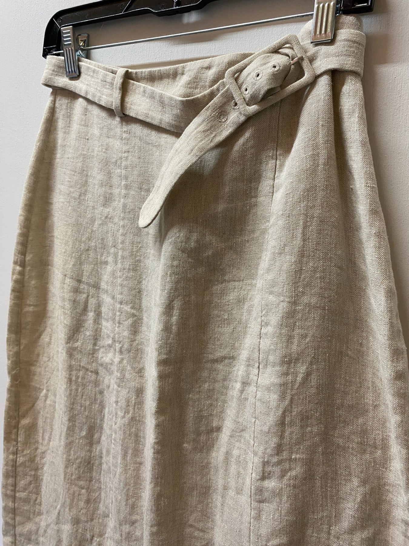 Los Angeles Size Medium Cream Linen Skirt With Belt