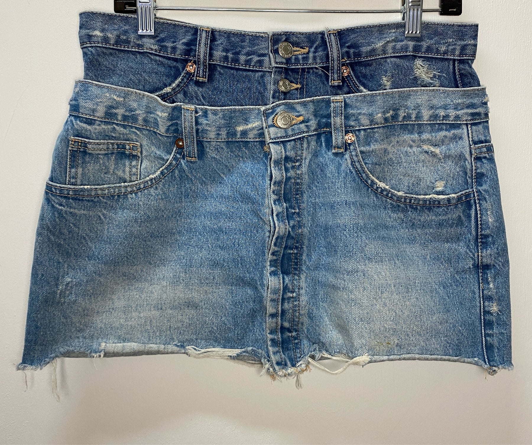 Zara Size Medium Double Waist Denim Mini Skirt